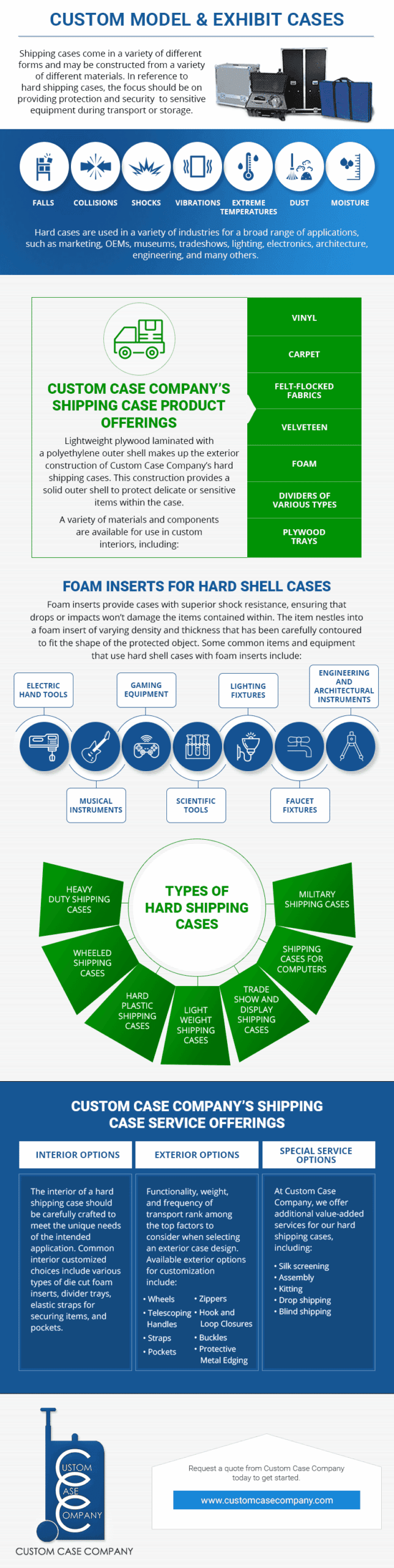 Shipping cases come in a variety of different forms and may be constructed from a variety of different materials. In reference to hard shipping cases, the focus should be on providing protection and security to sensitive equipment during transport or storage.